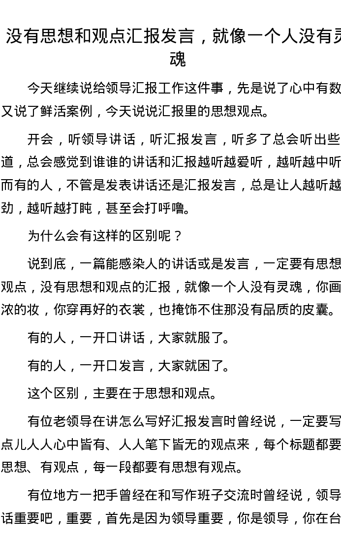 没有思想和观点汇报发言,就像一个人没有灵魂
