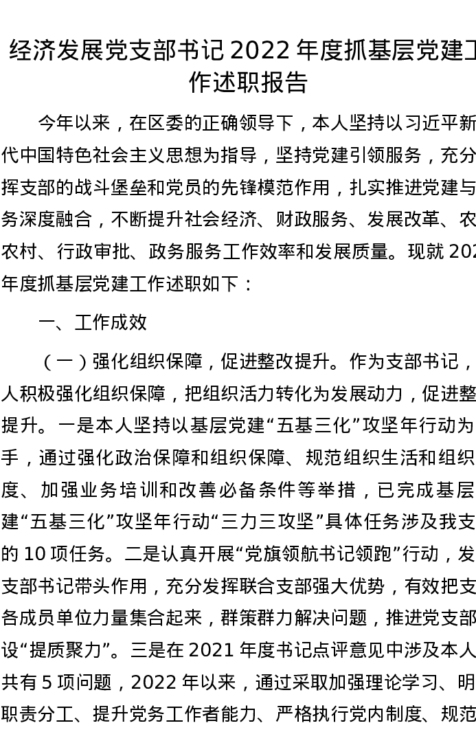 经济发展党支部书记2022年度抓基层党建工作述职报告