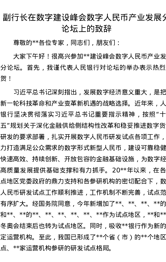 副行长在数字建设峰会数字人民币产业发展分论坛上的致辞