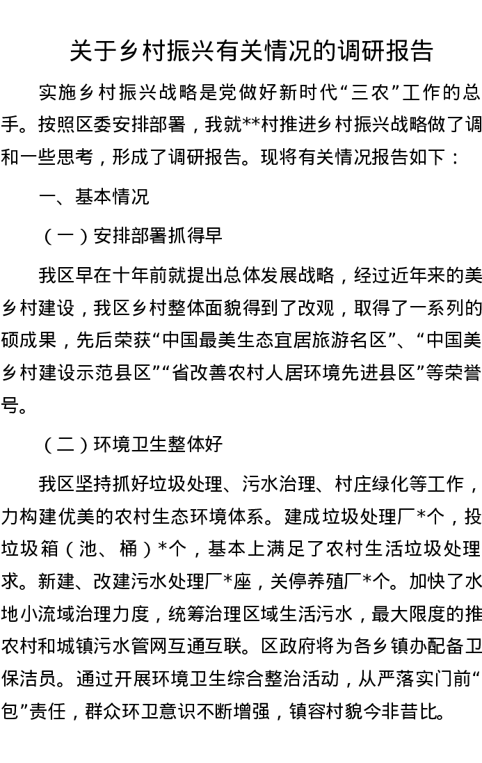 关于乡村振兴有关情况的调研报告