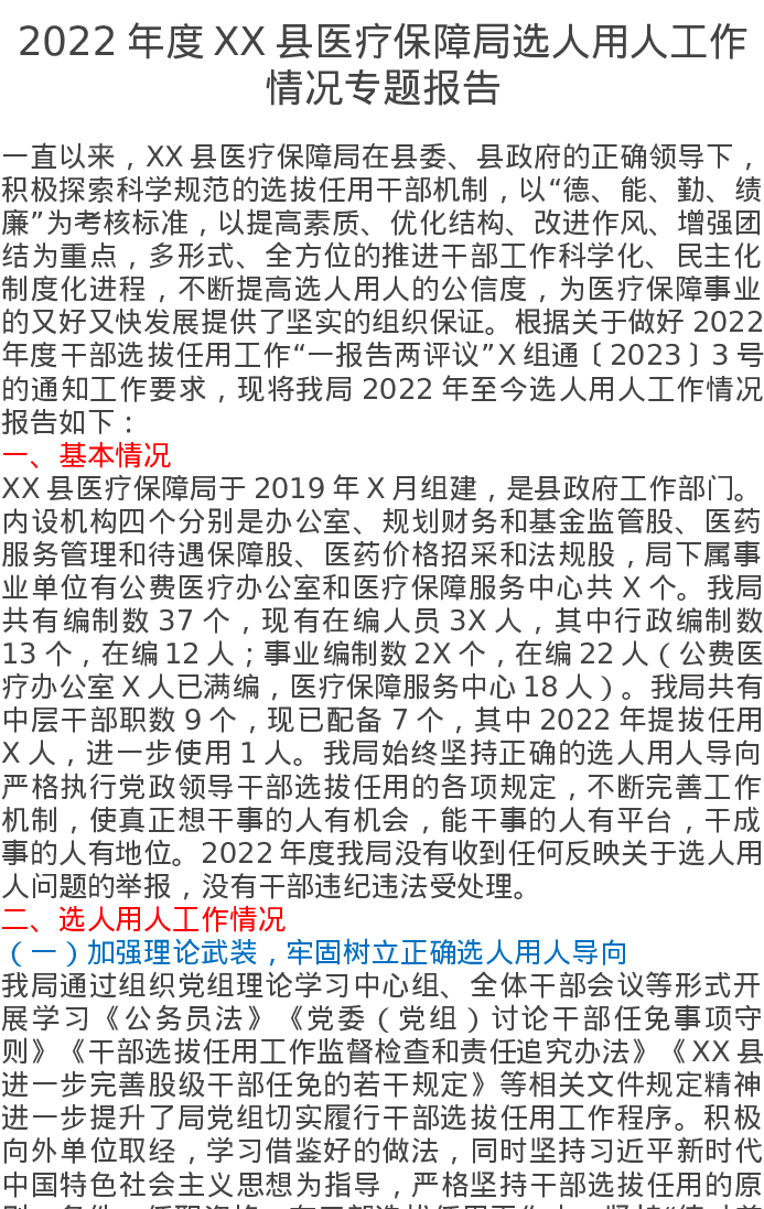 2022年度XX县医疗保障局选人用人工作情况专题报告