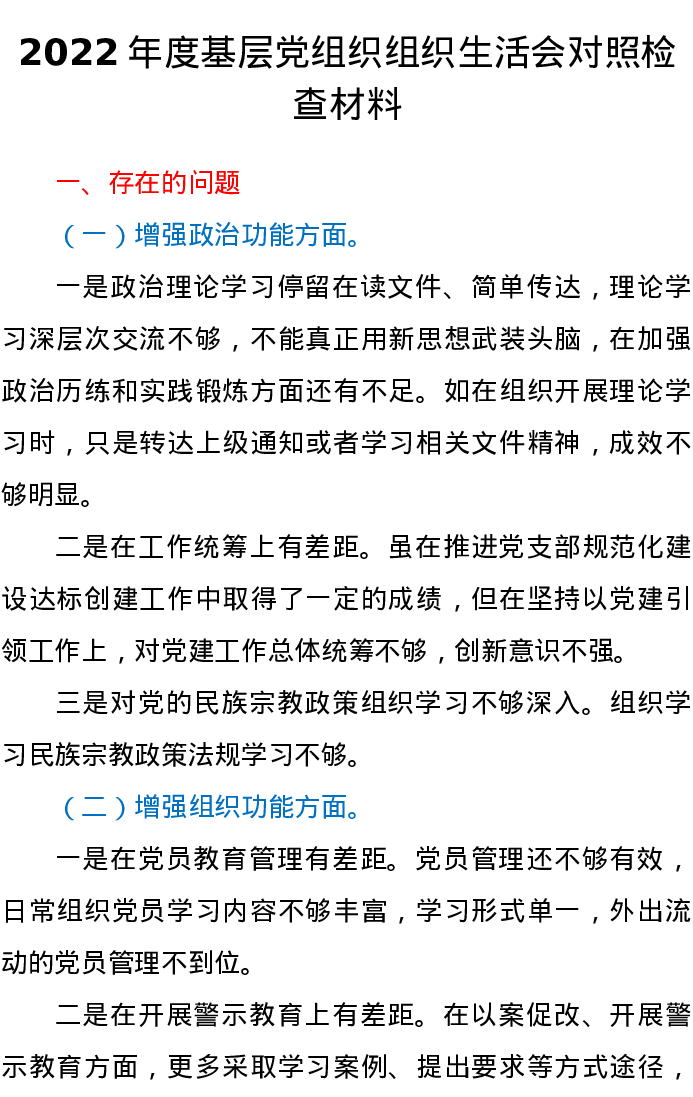 汇编:2022(2023)年党支部班子组织生活会对照检查材料和问题清单和整改清单全套