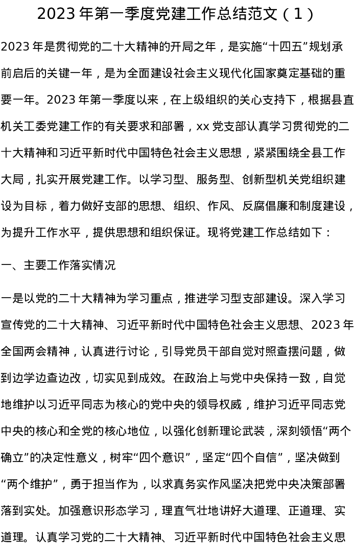 汇编:2023年第一季度党建工作总结3篇(支部、乡镇、政法委,汇报报告)