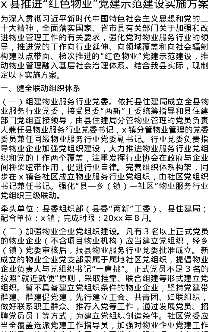 x县推进“红色物业”党建示范建设实施方案