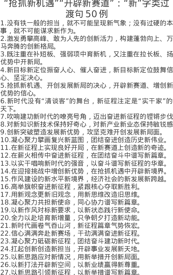抢抓新机遇开辟新赛道新字类过渡句50例