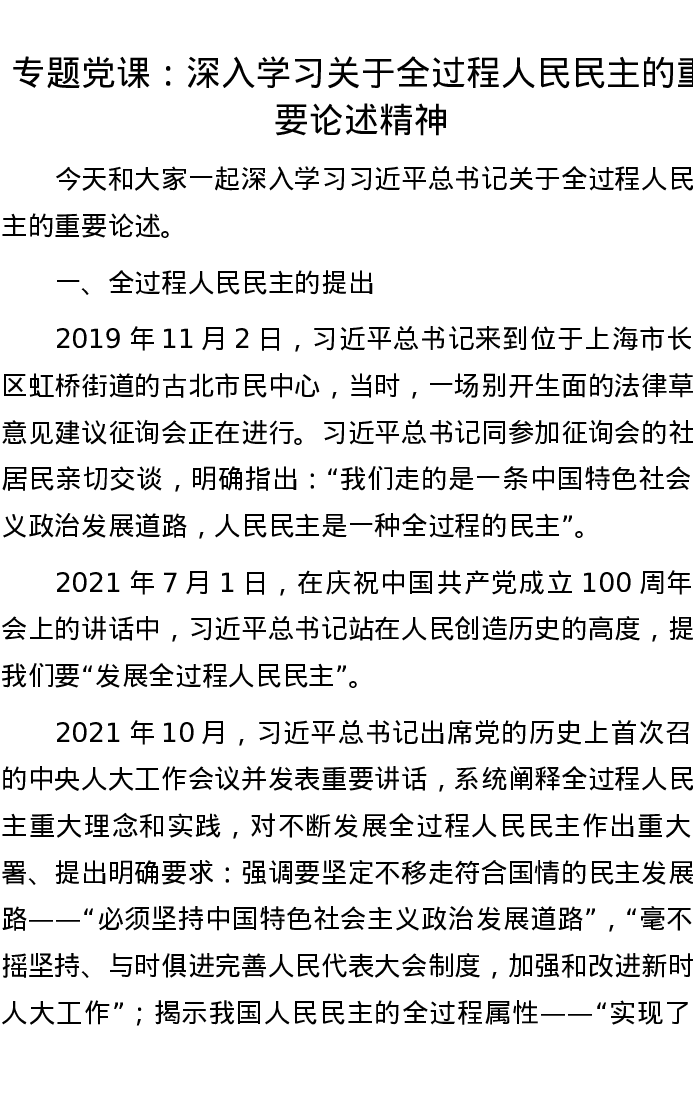 专题党课:深入学习关于全过程人民民主的重要论述精神
