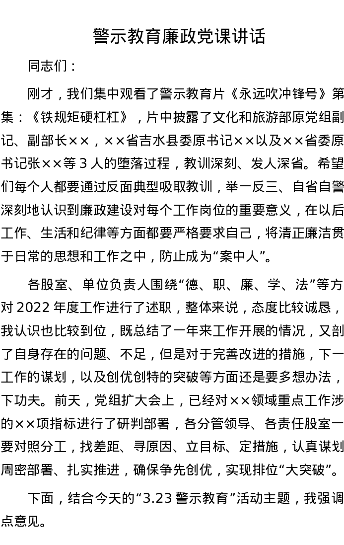 警示教育廉政党课讲话
