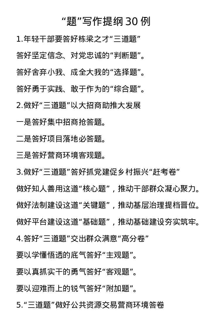 “题”写作提纲30例