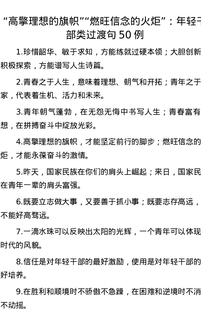 “高擎理想的旗帜”“燃旺信念的火炬”:年轻干部类过渡句50例