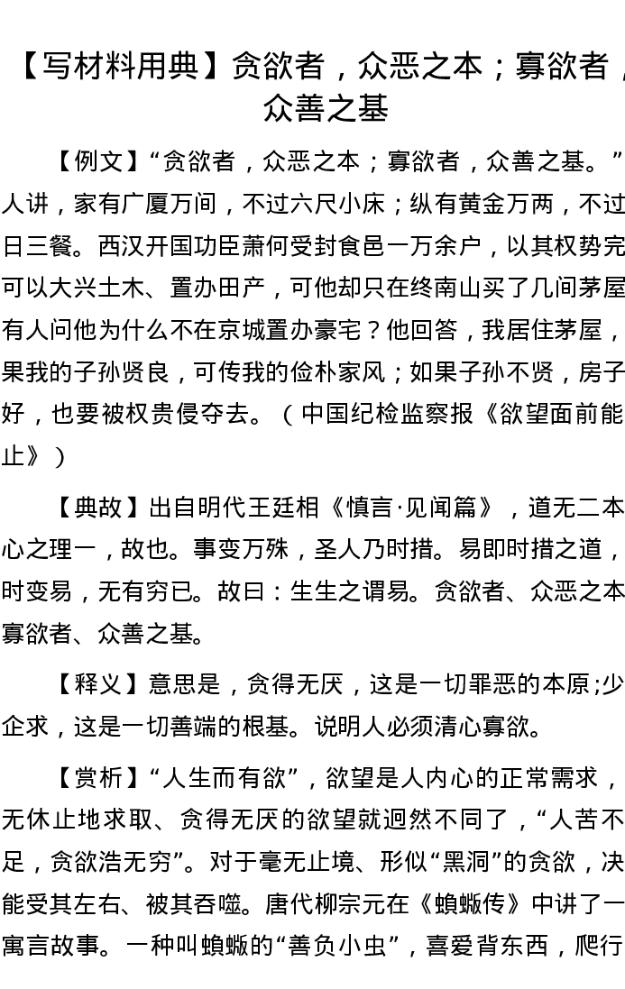 【写材料用典】贪欲者,众恶之本;寡欲者,众善之基