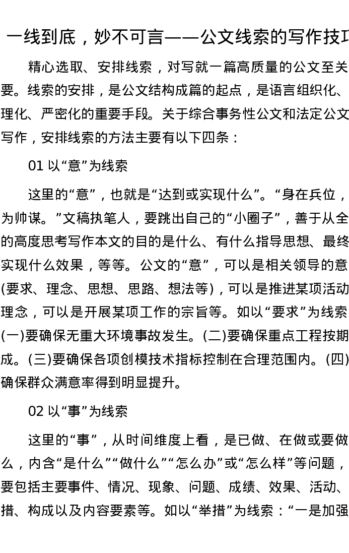 一线到底,妙不可言——公文线索的写作技巧