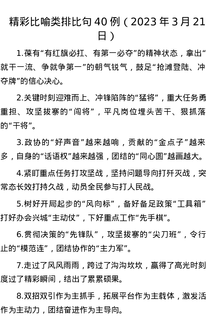 精彩比喻类排比句40例(2023年3月21日)