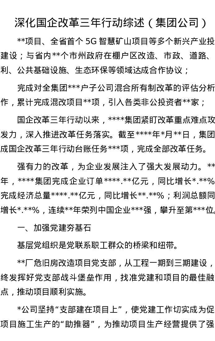 深化国企改革三年行动综述(集团公司)