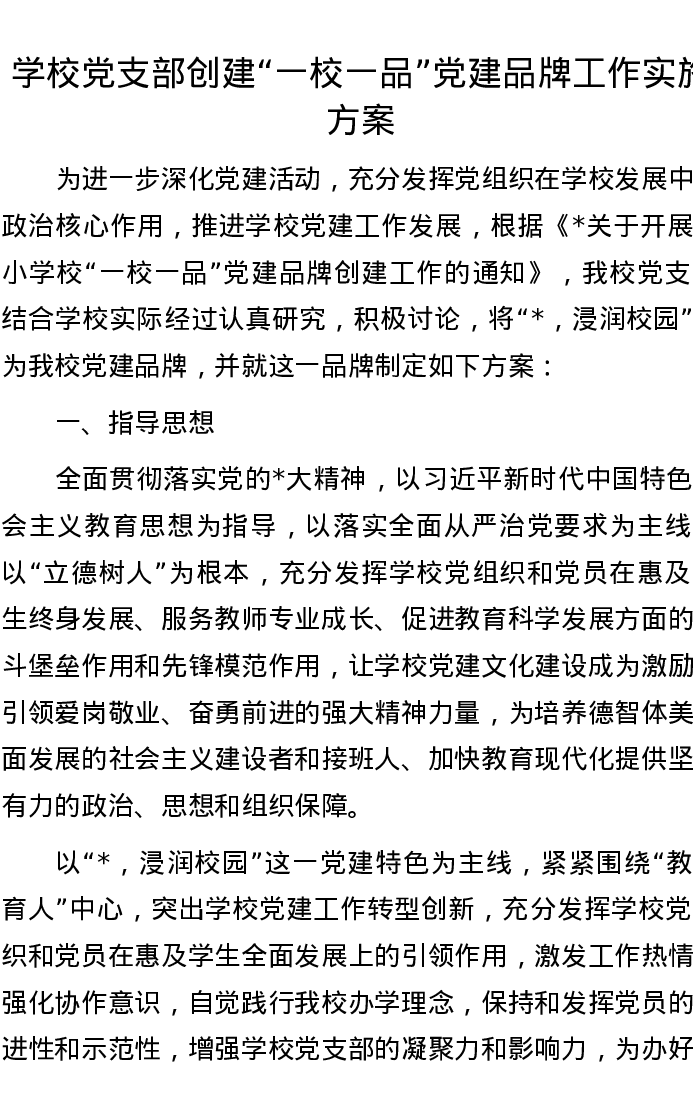 学校党支部创建“一校一品”党建品牌工作实施方案