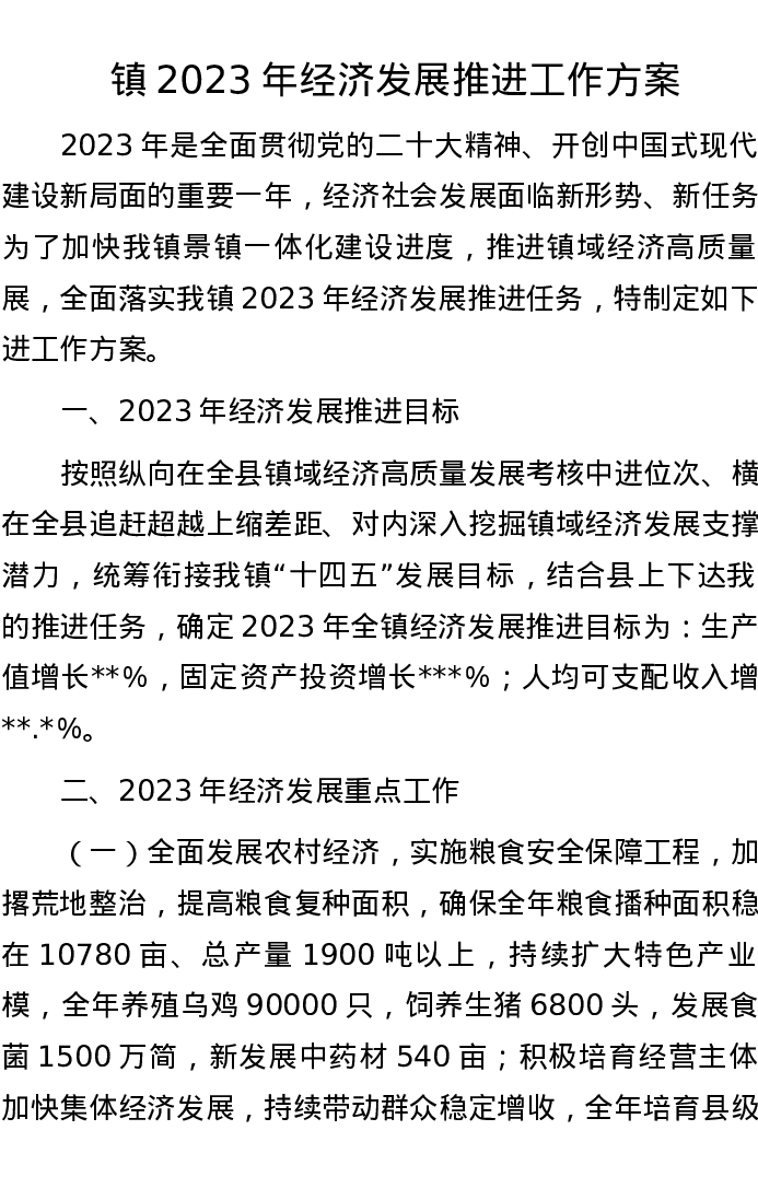 镇2023年经济发展推进工作方案