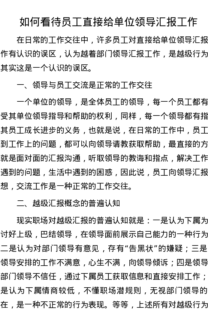 如何看待员工直接给单位领导汇报工作