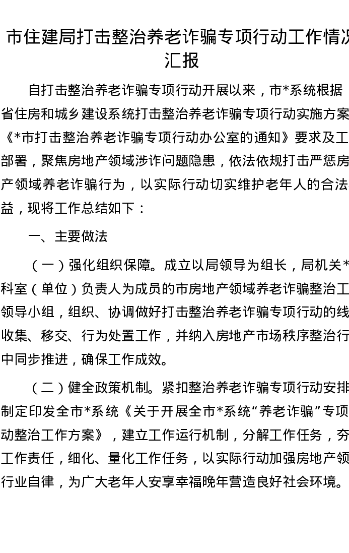 市住建局打击整治养老诈骗专项行动工作情况汇报