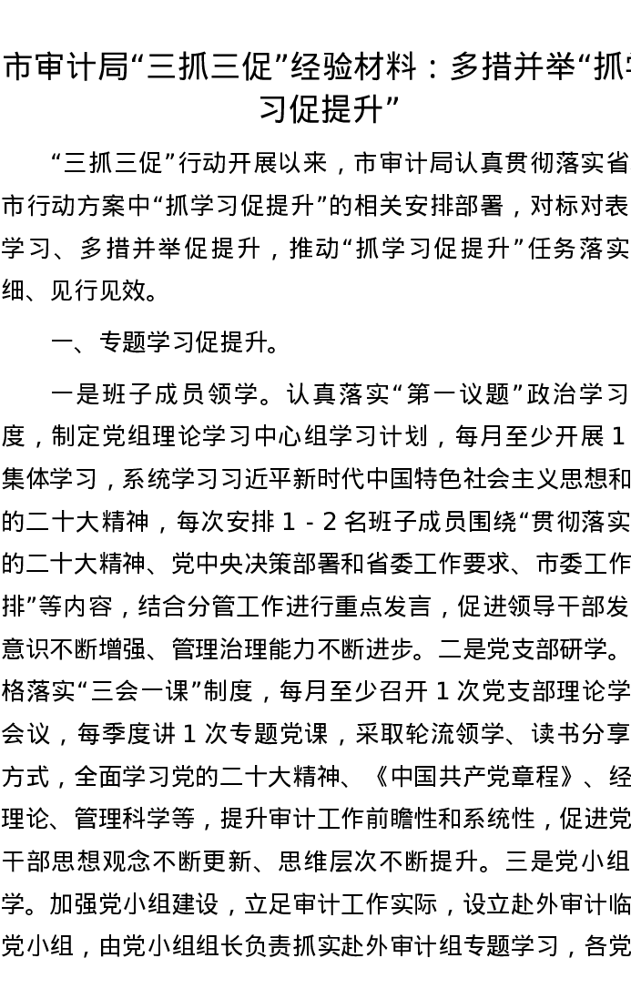 市审计局“三抓三促”经验材料:多措并举“抓学习促提升”