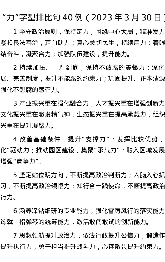 “力”字型排比句40例(2023年3月30日)