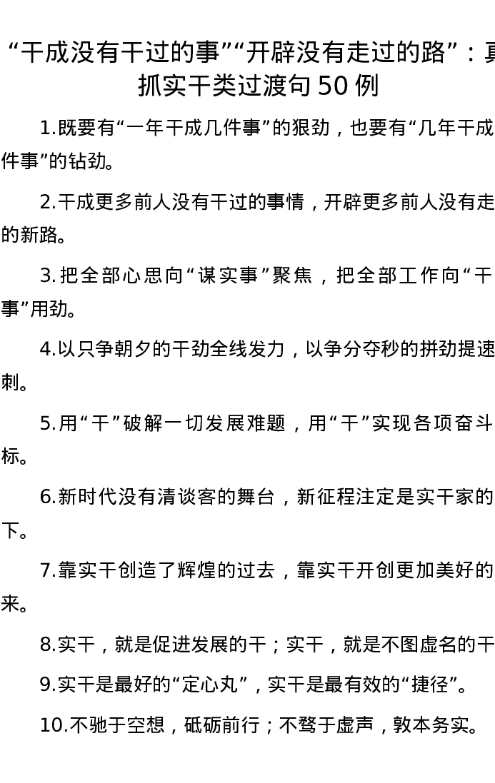 “干成没有干过的事”“开辟没有走过的路”:真抓实干类过渡句50例