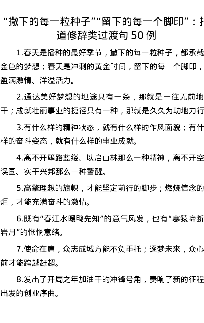 “撒下的每一粒种子”“留下的每一个脚印”:报道修辞类过渡句50例