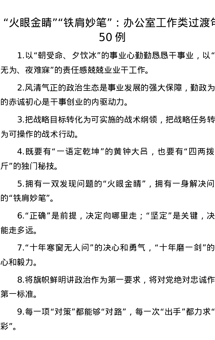 “火眼金睛”“铁肩妙笔”:办公室工作类过渡句50例