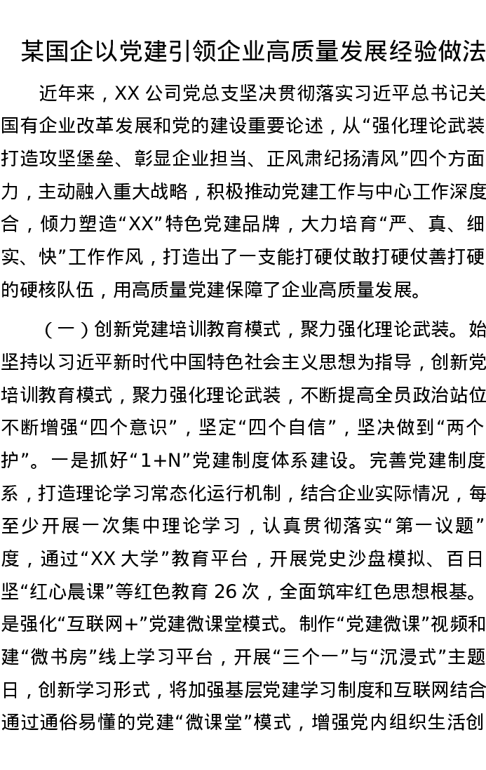 某国企以党建引领企业高质量发展经验做法