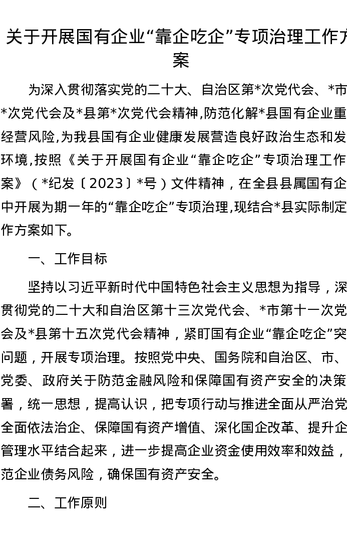 关于开展国有企业“靠企吃企”专项治理工作方案