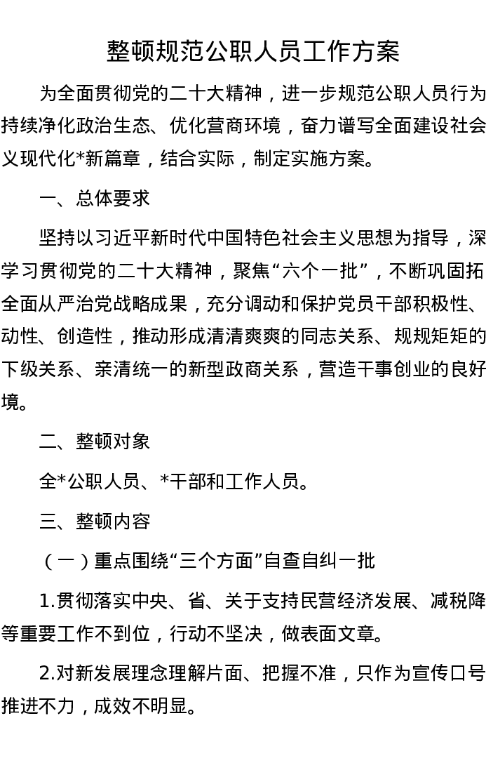 整顿规范公职人员工作方案
