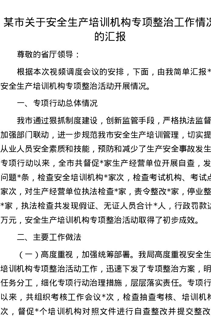 某市关于安全生产培训机构专项整治工作情况的汇报