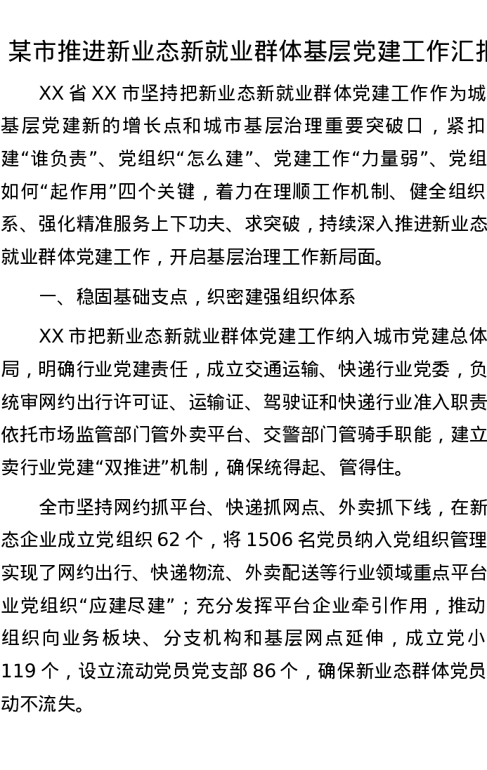 某市推进新业态新就业群体基层党建工作汇报