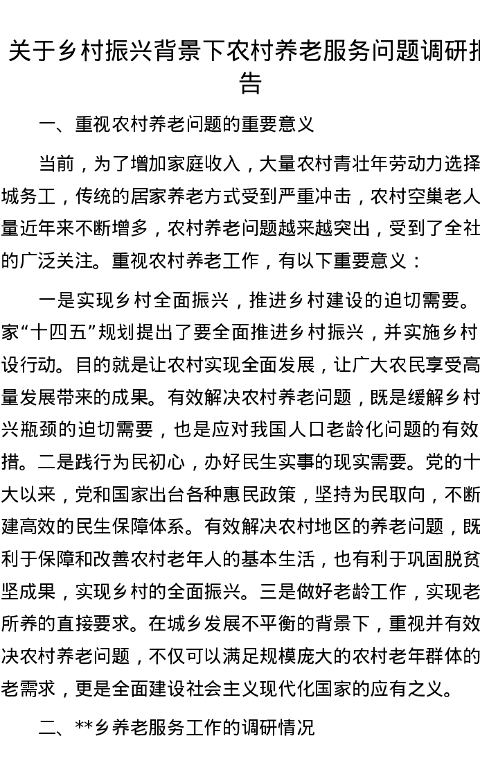 关于乡村振兴背景下农村养老服务问题调研报告