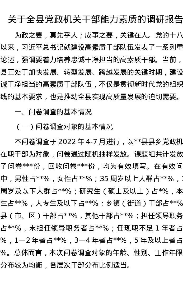 关于全县党政机关干部能力素质的调研报告