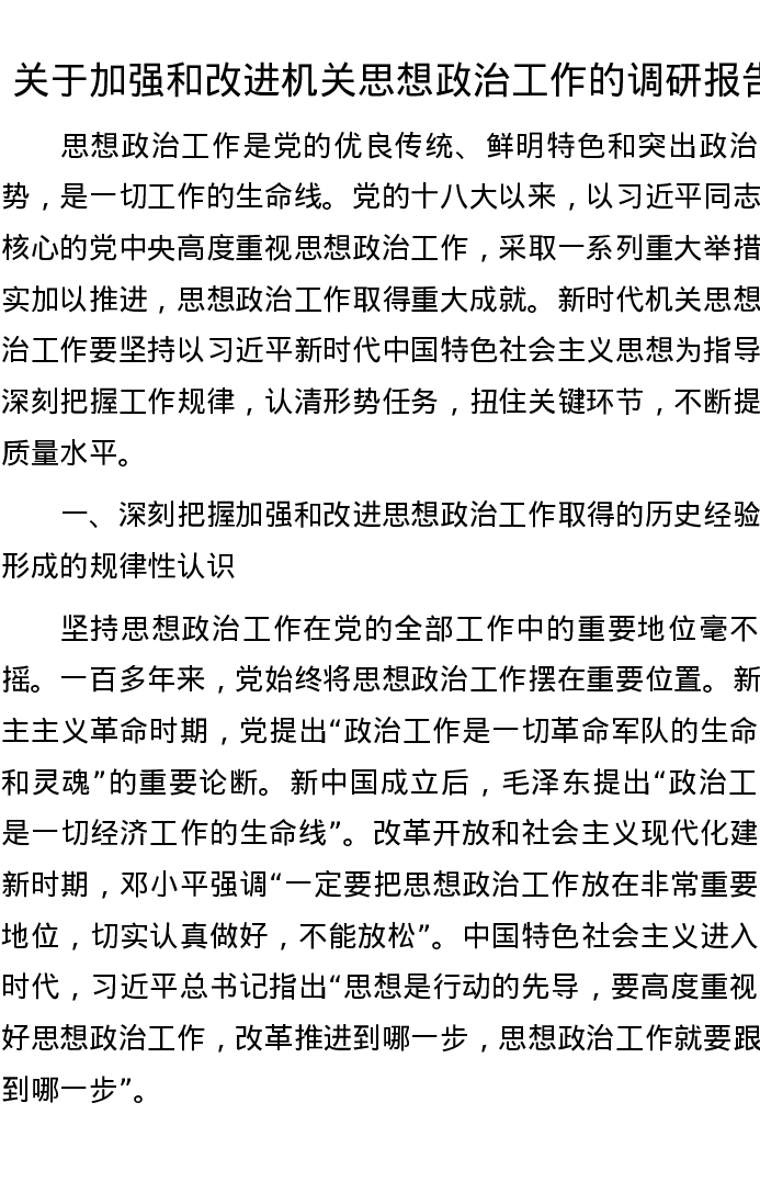 关于加强和改进机关思想政治工作的调研报告