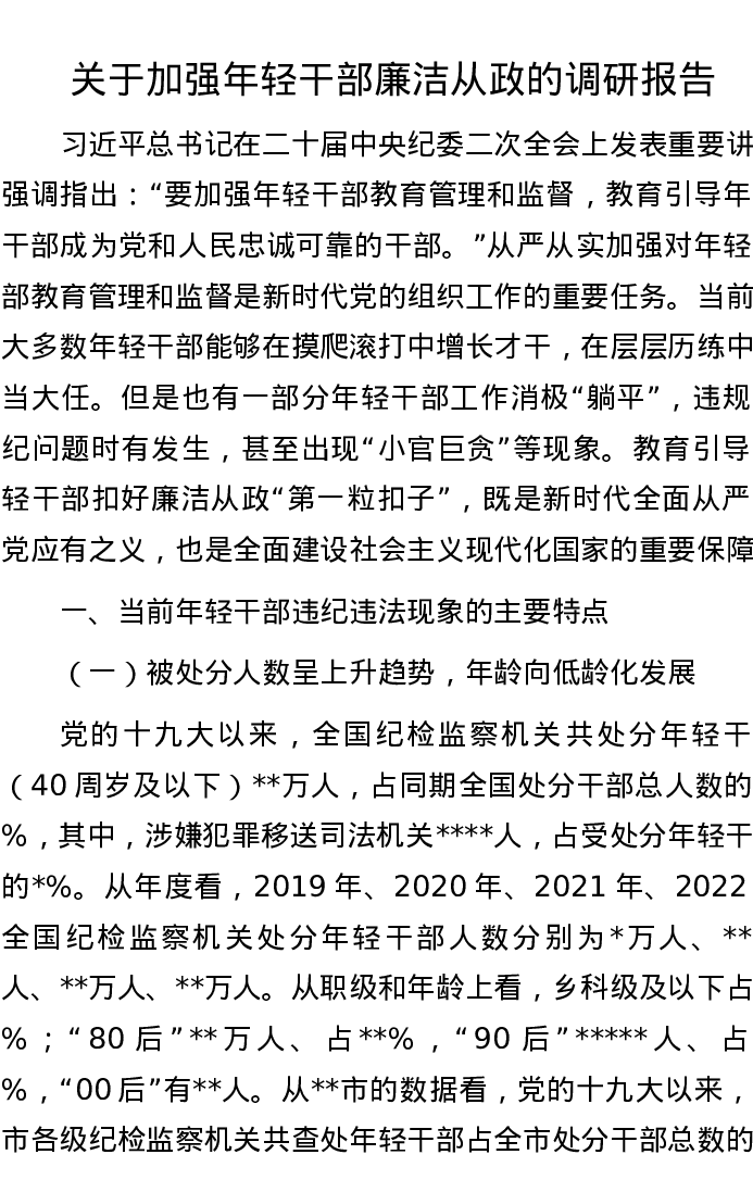关于加强年轻干部廉洁从政的调研报告