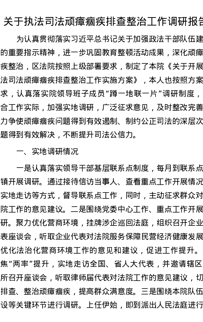 关于执法司法顽瘴痼疾排查整治工作调研报告