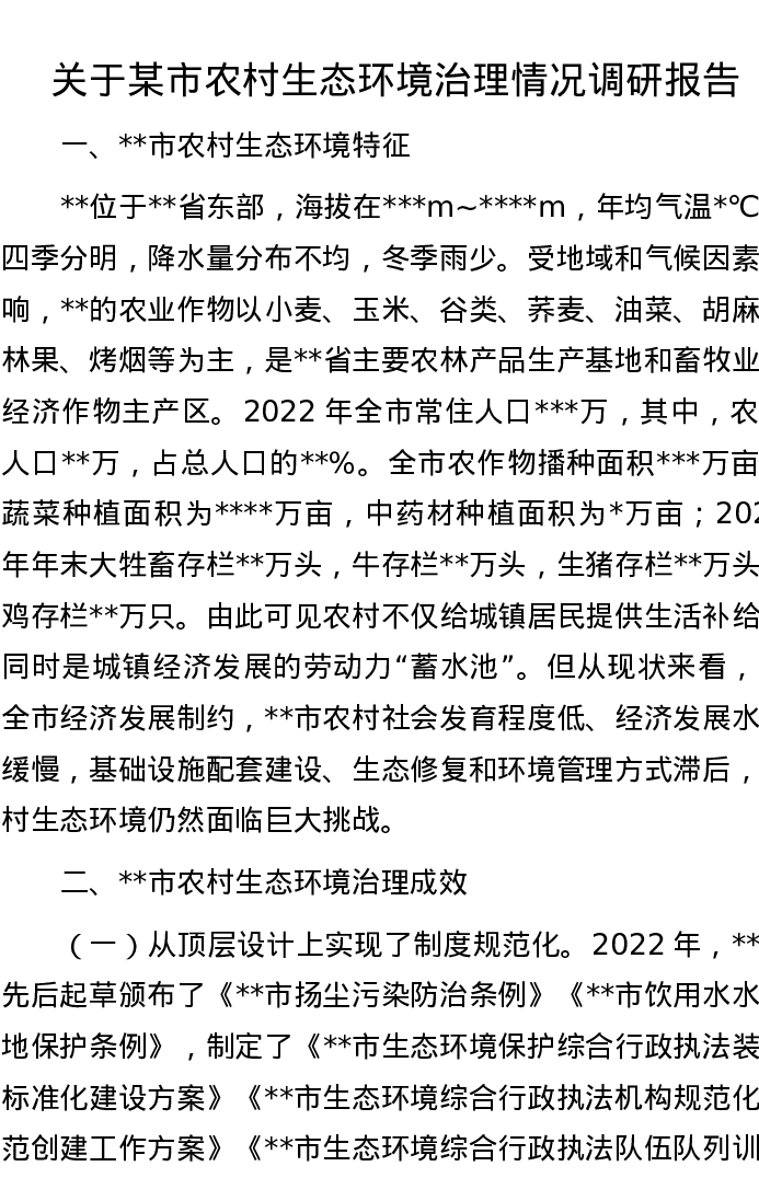 关于某市农村生态环境治理情况调研报告