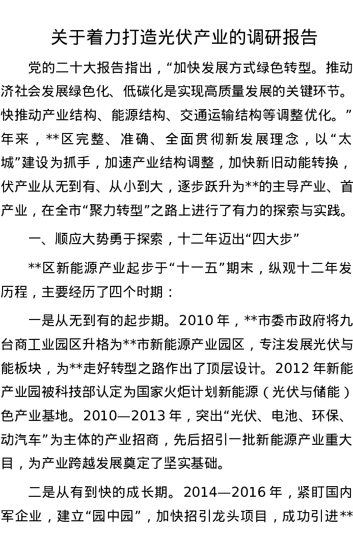 关于着力打造光伏产业的调研报告