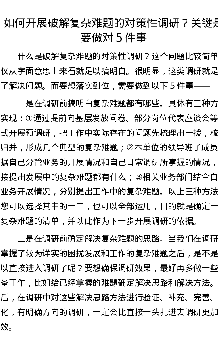 如何开展破解复杂难题的对策性调研?关键是要做对5件事