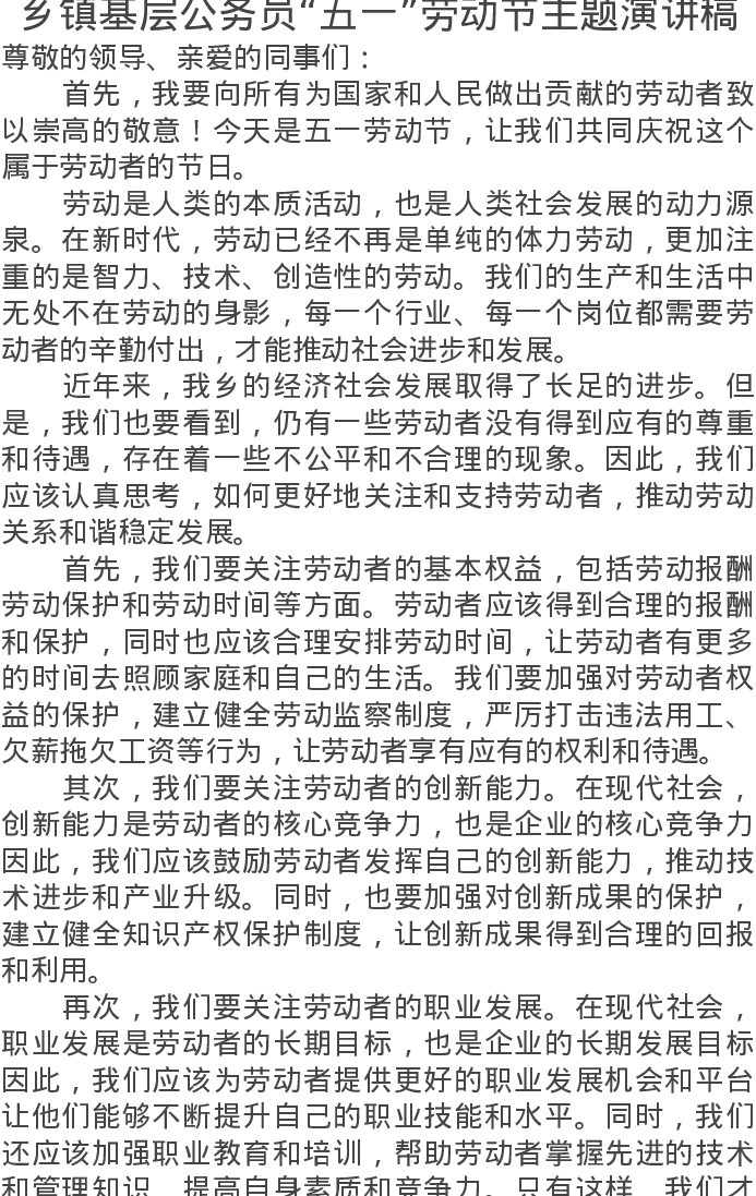 乡镇基层公务员“五一”劳动节主题演讲稿