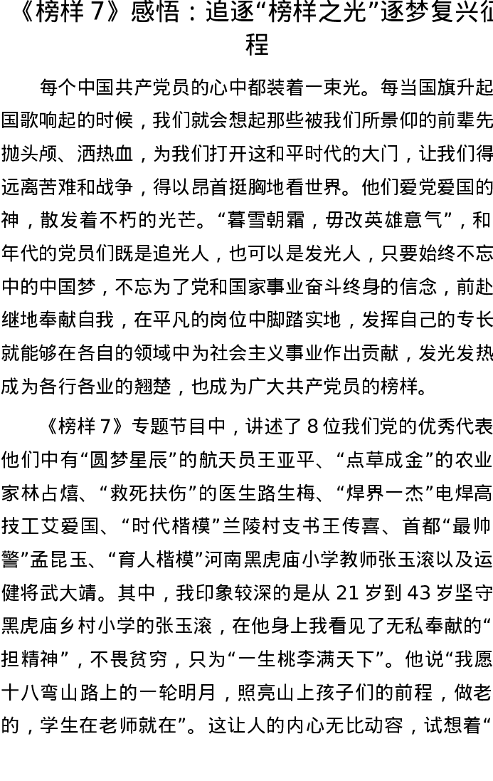 《榜样7》感悟:追逐“榜样之光”逐梦复兴征程