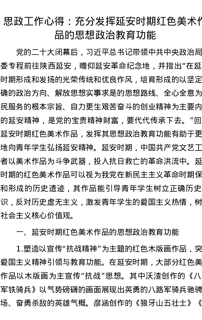 思政工作心得:充分发挥延安时期红色美术作品的思想政治教育功能