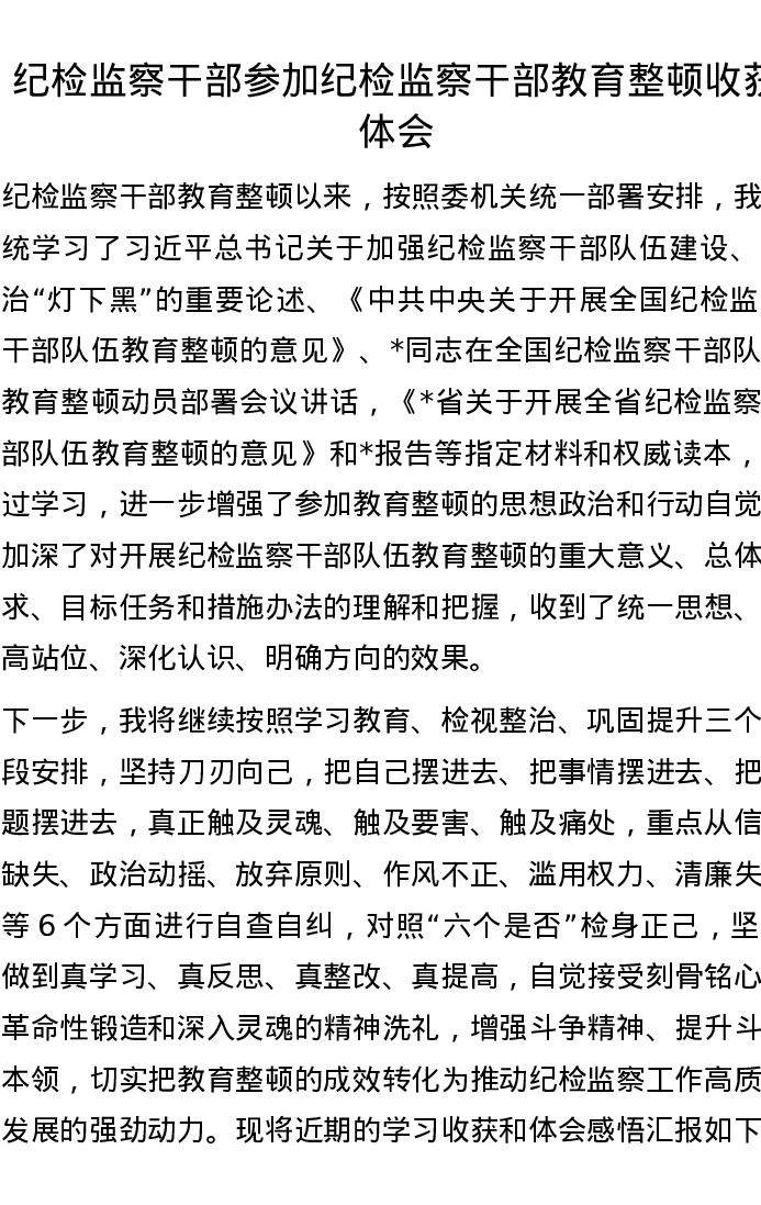 纪检监察干部参加纪检监察干部教育整顿收获体会