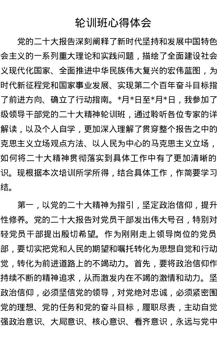 轮训班心得体会