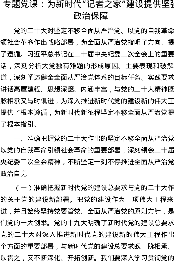 专题党课:为新时代“记者之家”建设提供坚强政治保障
