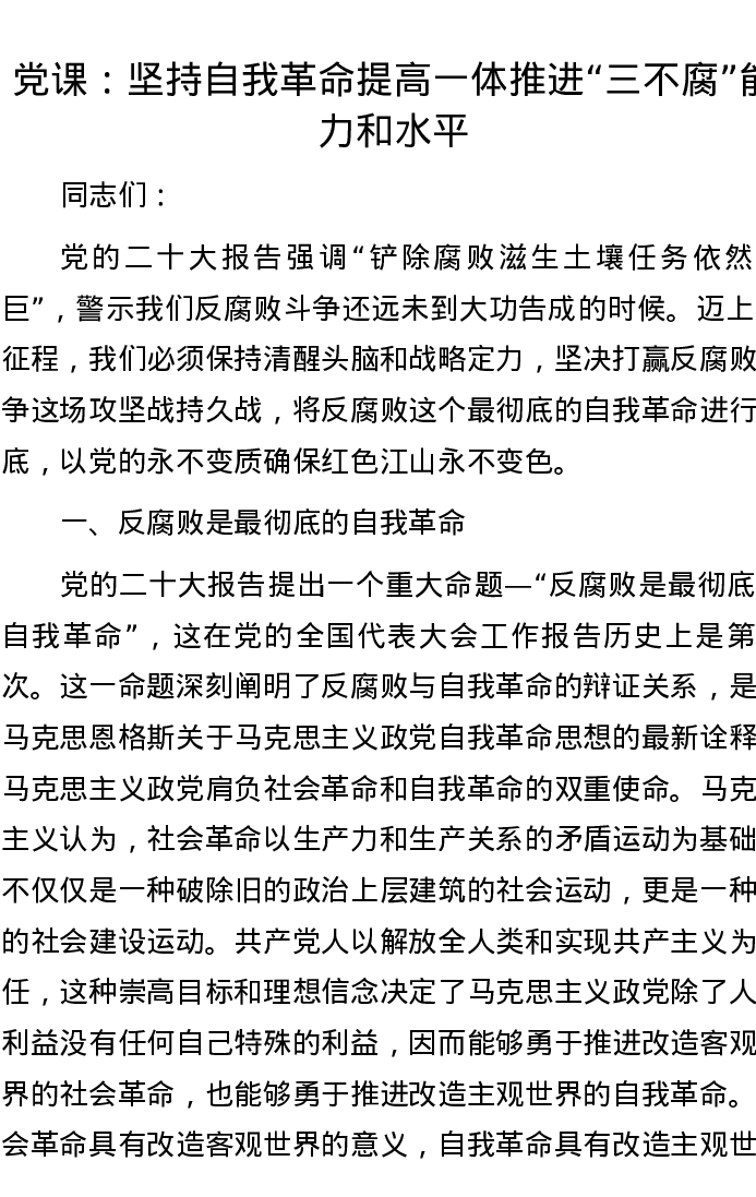 党课:坚持自我革命 提高一体推进“三不腐”能力和水平