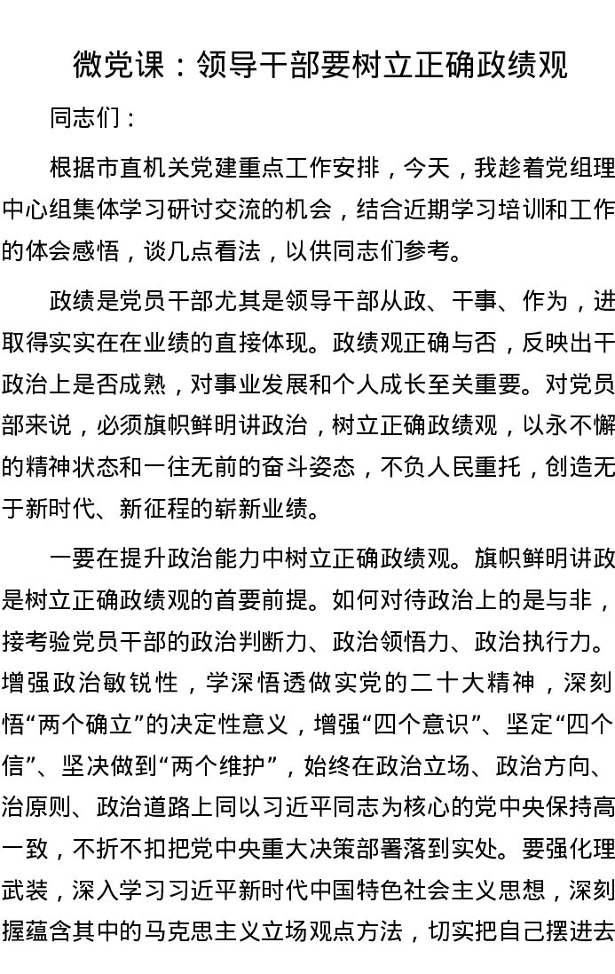 微党课:领导干部要树立正确政绩观