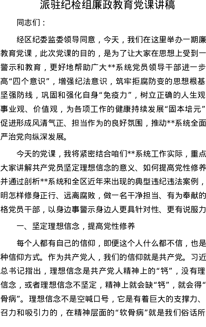 派驻纪检组廉政教育党课讲稿