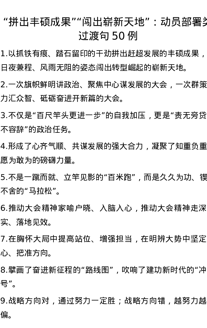 “拼出丰硕成果”“闯出崭新天地”:动员部署类过渡句50例