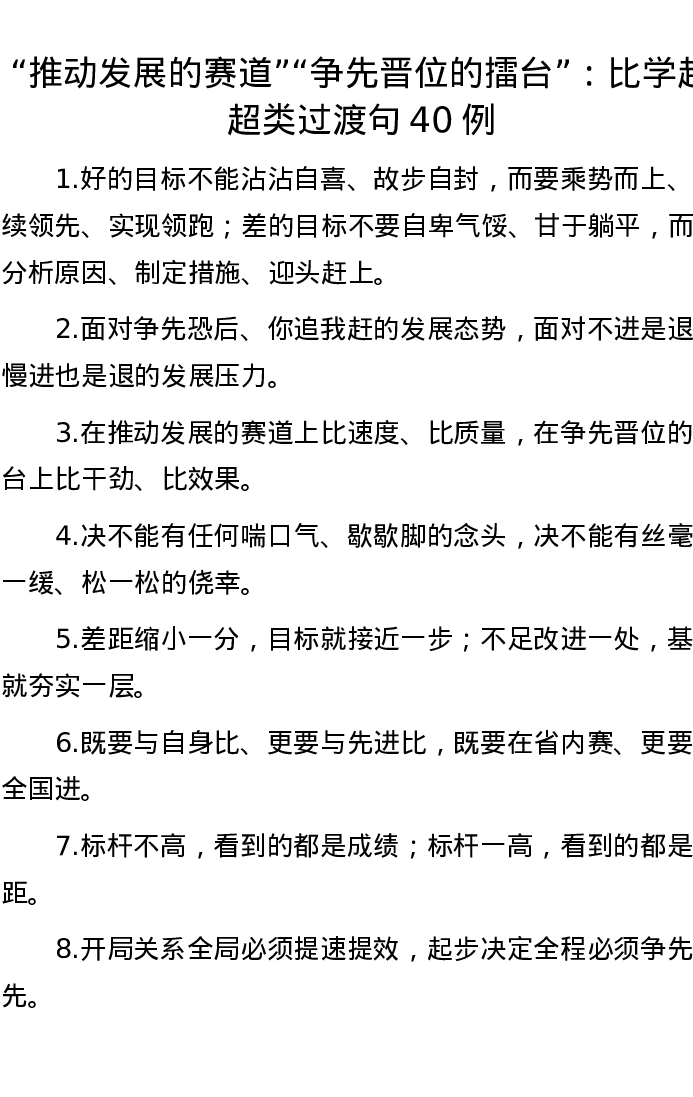 “推动发展的赛道”“争先晋位的擂台”:比学赶超类过渡句40例